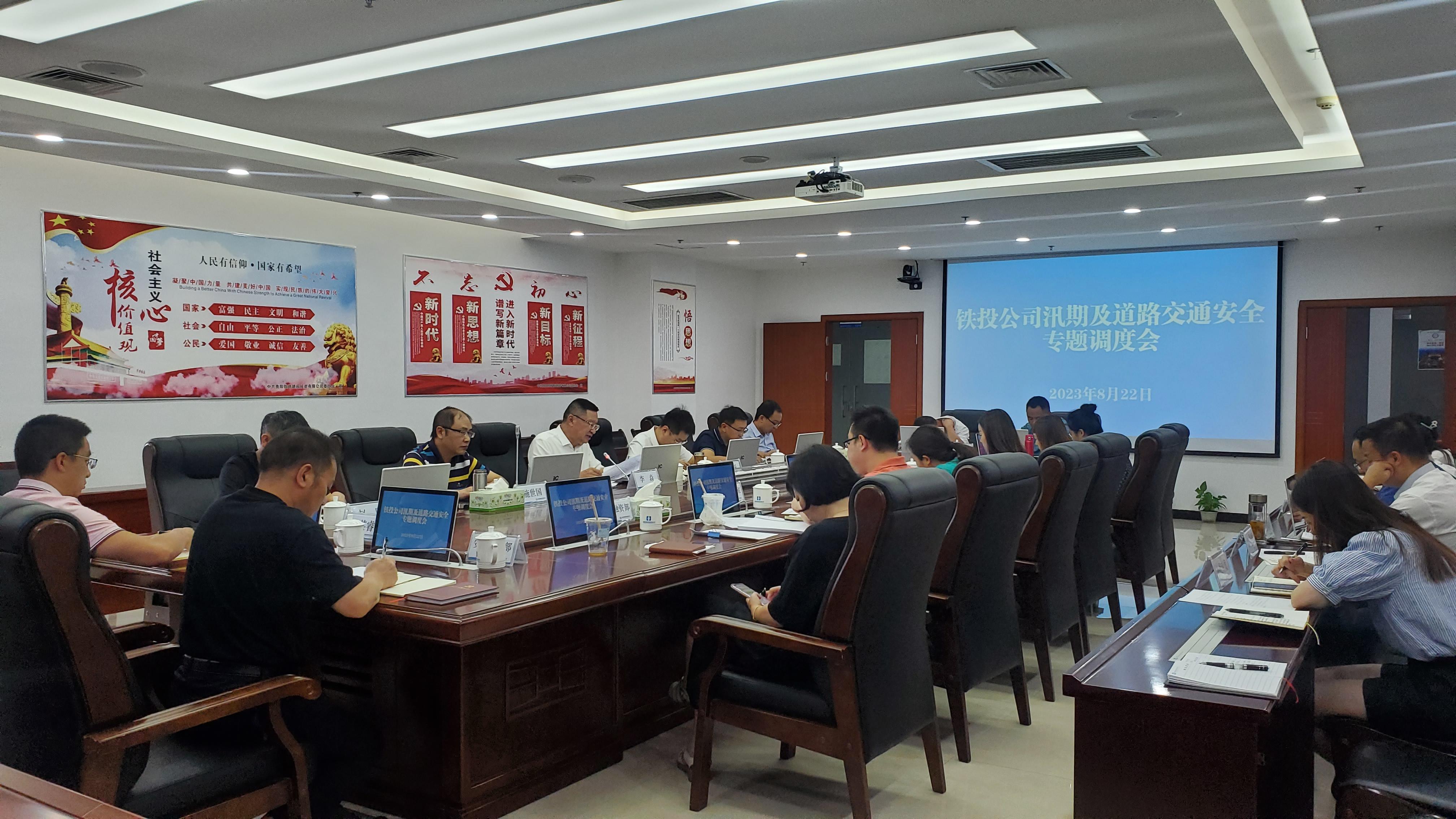 8月22日上午,集团总经理助理,铁投公司党委书记、董事长孙乐主持召开汛期及道路交通安全专题调度会议,集团党委委员、副总经理李焱出席,公司领导班子、各部门负责人及各子公司负责人参加。