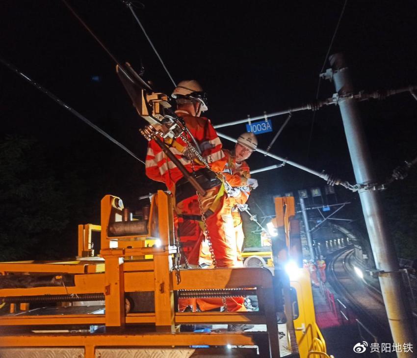为确保接触网设备运行安全,保障贵阳地铁行车安全运营,5月19日,轨道运营公司组织开展接触网刚柔过渡换线施工,共46名业务骨干参加,顺利完成180米刚柔过渡处接触线的更换。