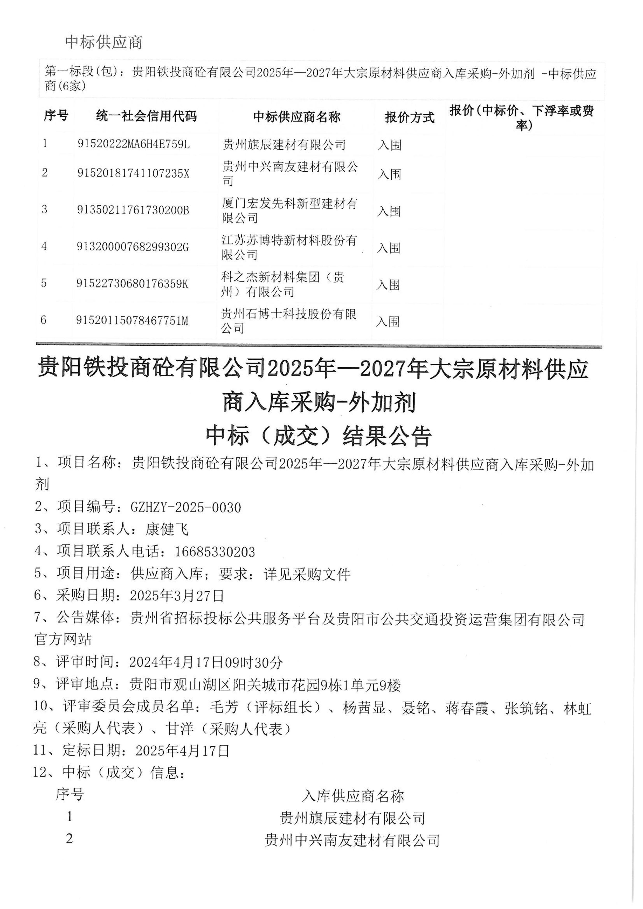 下一篇 贵阳铁投商砼有限公司2025-2027膨胀剂原材料供应商入库采购中标(成交)结果公告