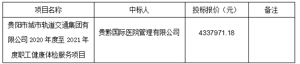 贵阳市城市轨道交通集团有限公司2020年度至2021年度职工健康体检服务项目中标公告
