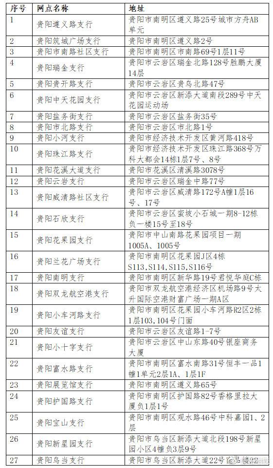 附件一:贵州银行贵阳地区各营业网点地址