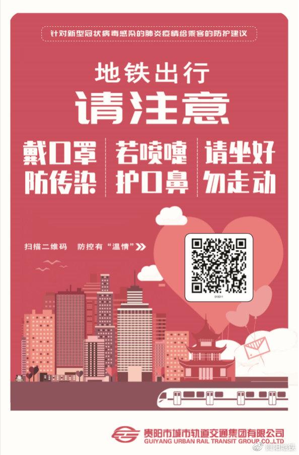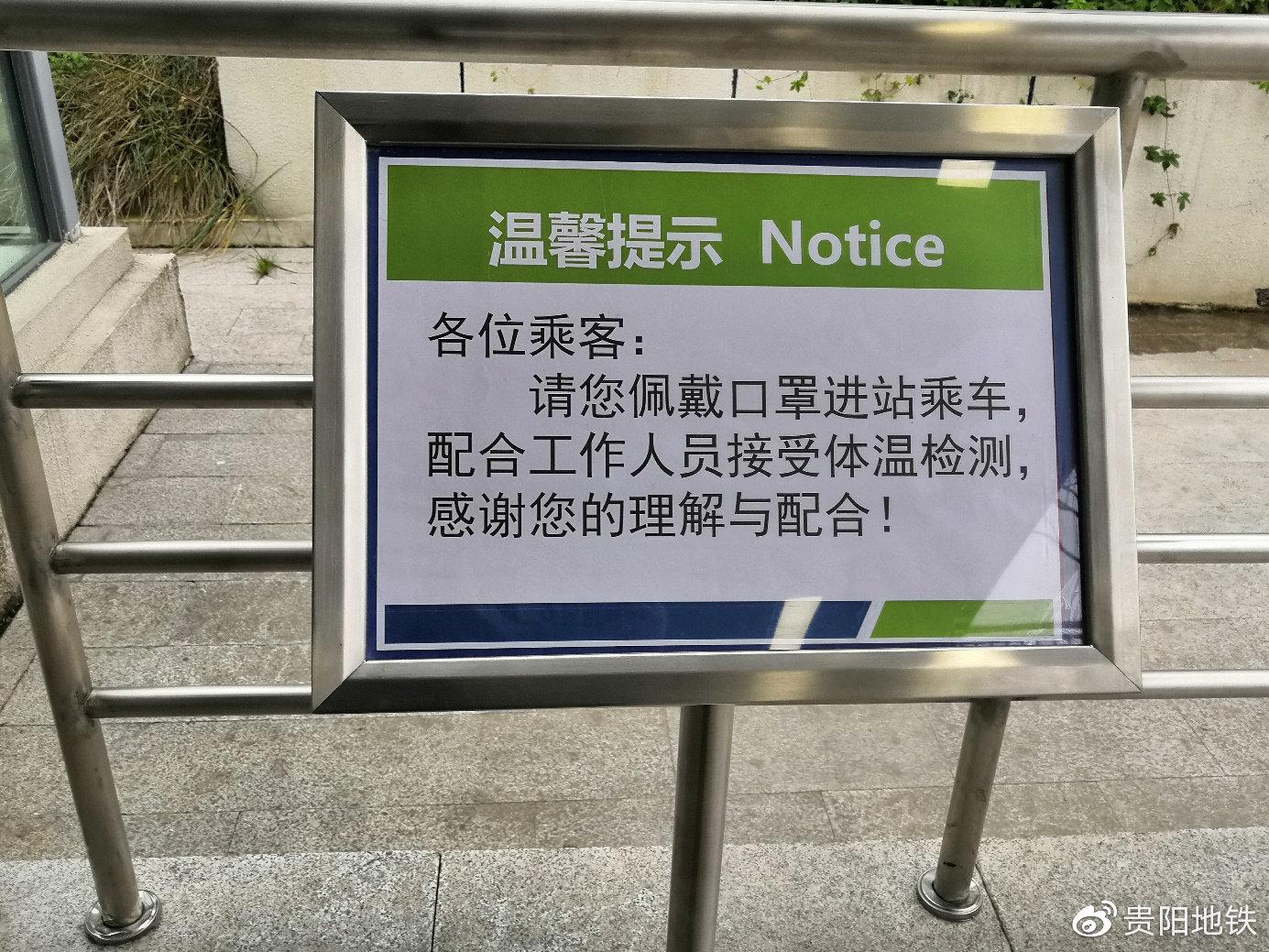 温馨提示:地铁车站、车厢相对封闭,人员相对密集,疫情期间请您仔细聆听地铁提示广播、查看宣传信息;搭乘地铁过程中,请尽量避免与车站、车厢内的设备设施及其他乘客直接接触。若您在搭乘地铁过程中需要帮助,请及时联系车站工作人员或拨打贵阳地铁运营服务热线0851-87166669,我们将竭诚为您服务!