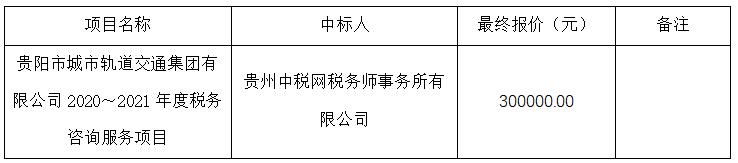 贵阳市城市轨道交通集团有限公司2020~2021年度税务咨询服务项目中标公告