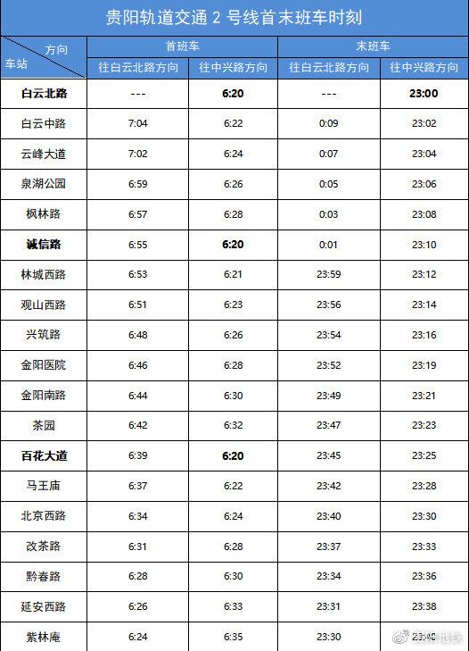 关于贵阳轨道交通2号线开通日(2021年4月28日)运营时间的通告