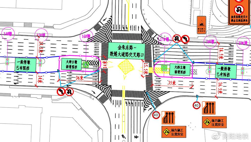 根据贵阳市有轨电车示范线(T2线)施工需要,决定从2022年7月23日起,在数博大道长岭北路与金朱东路交叉口(以下简称金融城路口)进行施工。为确保施工的顺利进行和周边道路安全畅通,根据《中华人民共和国道路交通安全法》第三十九条规定,届时将对金融城路口的交通组织进行调整,现将相关事宜通告如下: