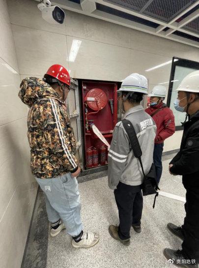 在轨道2号线车站,王伦月和同事认真开展消防验收检查