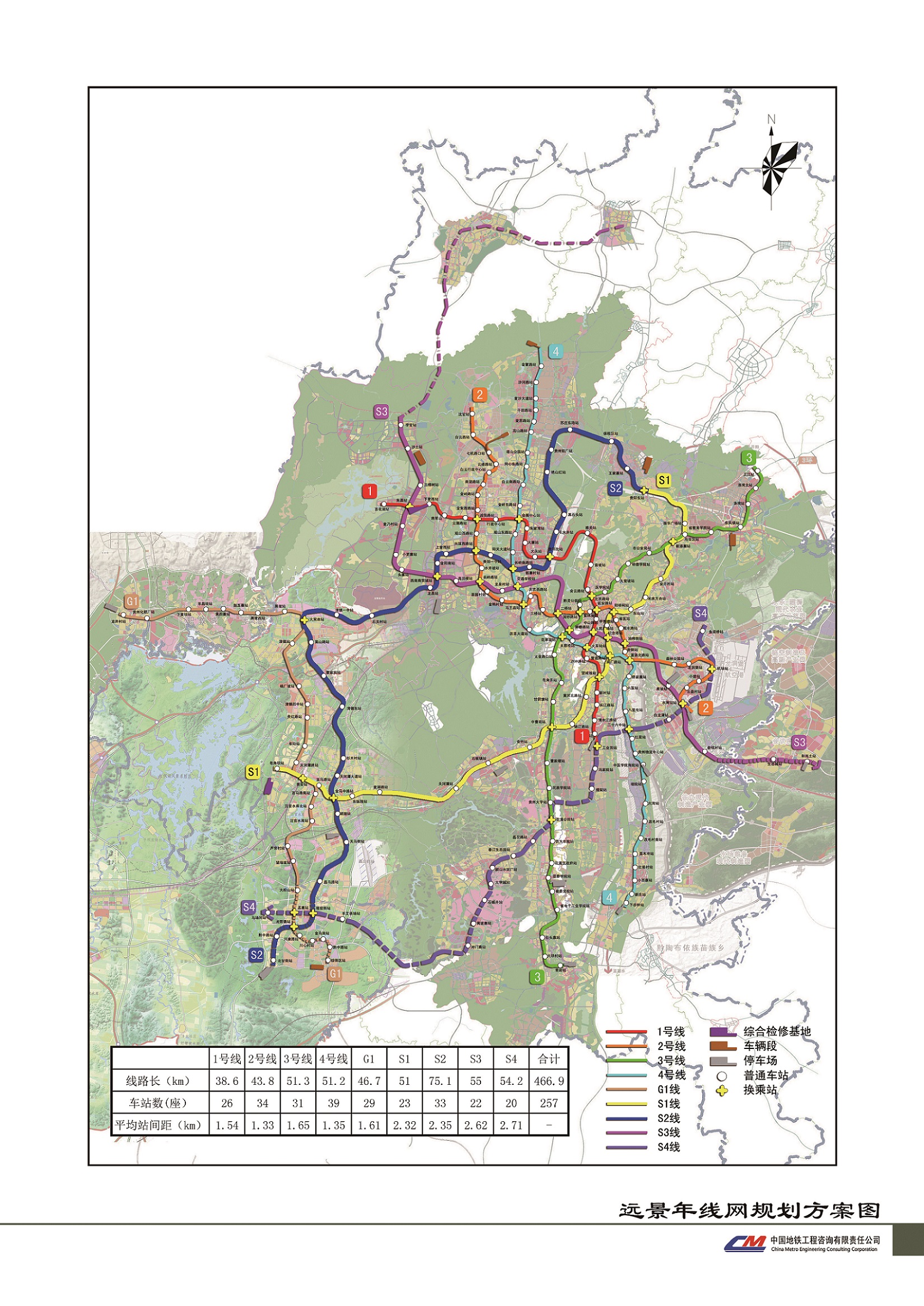 2008年和2015年,市政府分别批复了两轮轨道交通线网规划,共9条线(1号线、2号线、3号线、4号线、S1线、S2线、S3线、S4线、G1线),线网规模467公里,总投资约2785亿元。