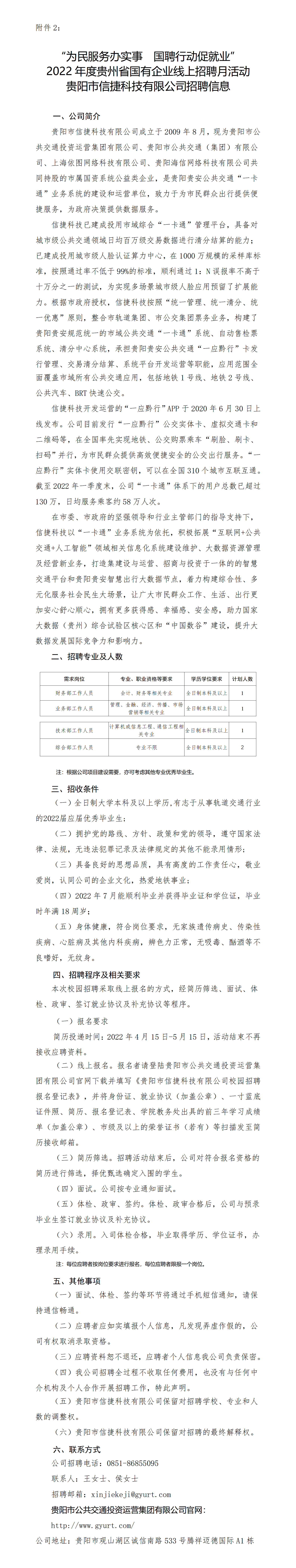 “为民服务办实事 国聘行动促就业” 2022年度贵州省国有企业线上招聘月活动 贵阳市信捷科技有限公司招聘信息