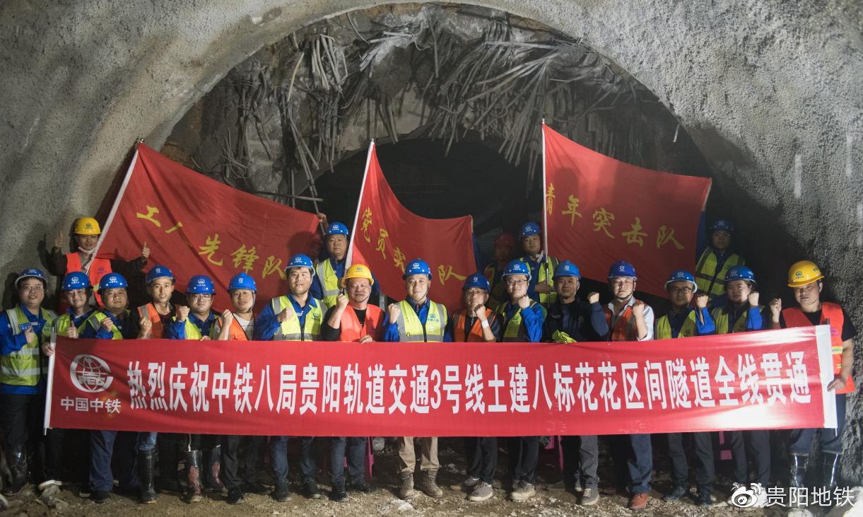 5月28日,伴随着挖掘机破碎头缓缓破土而出,由中铁八局贵阳轨道交通3号线项目部负责施工的轨道交通3号线花果园西站~花果园东站区间隧道右线顺利贯通,花~花区间隧道实现全线贯通。