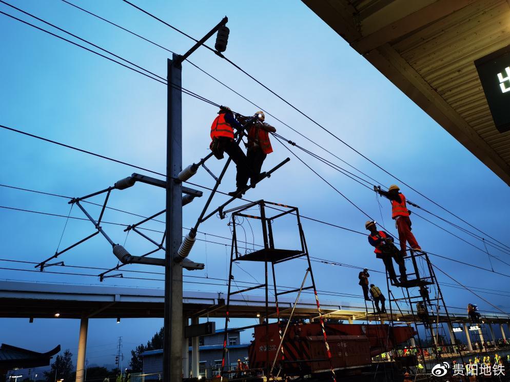 贵广高铁作为重要的高铁干线,日均客流量十分庞大,贵广高铁恢复通车迫在眉睫。项目部全体员工临危受命,妥善部署、快速响应,第一时间根据应急预案采取应急措施。6月4日晚,项目部完成了包括立杆、腕臂安装调整、线材调整等8个定位点接触网修复;6月5日凌晨,项目部完成了4个定位点基础修复,达到立杆条件,并配合清理站台垃圾。