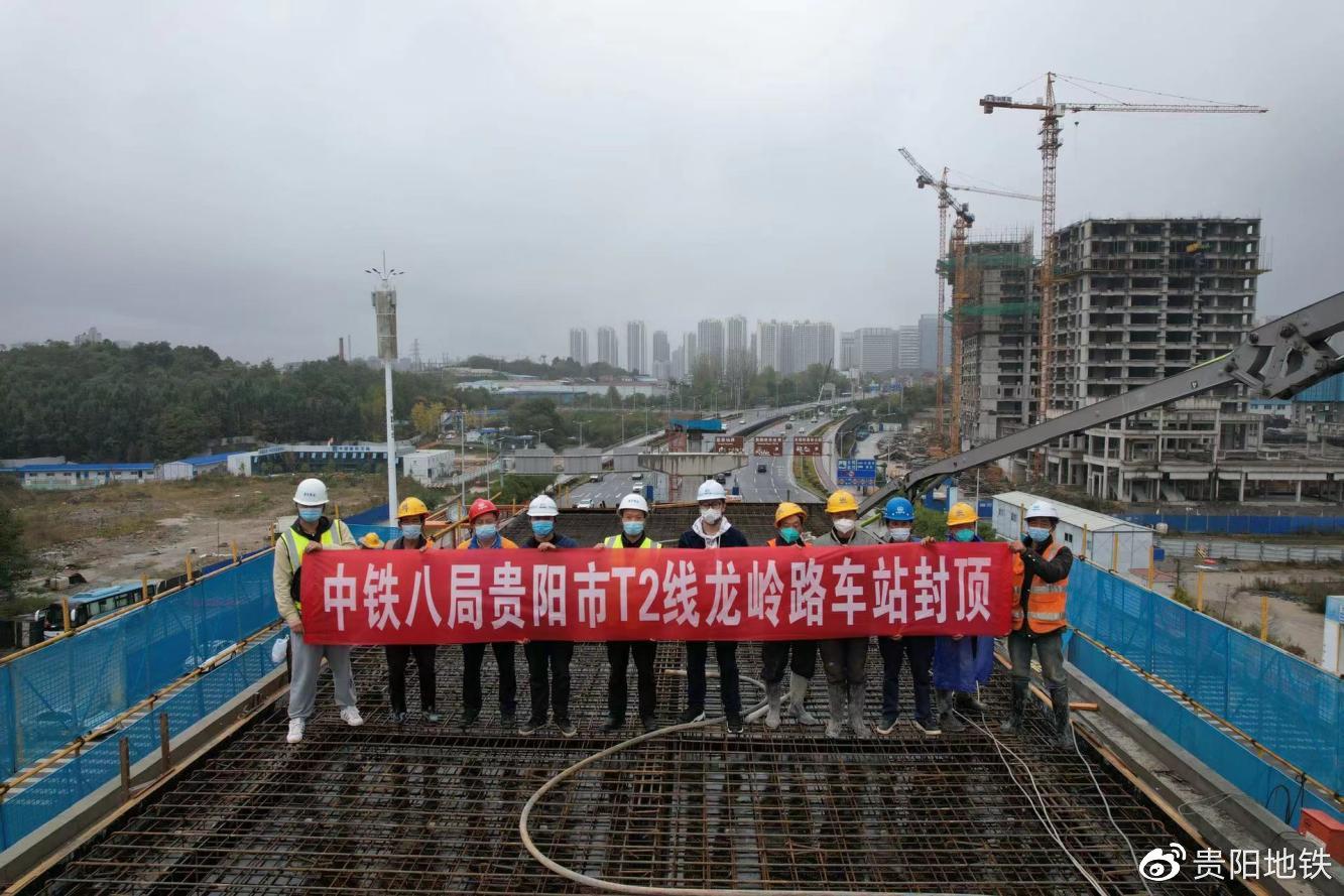 10月30日,贵阳有轨电车T2线龙岭路站主体结构顺利封顶,成为T2线第三个结构封顶的车站。