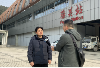 3月22日,贵阳市电视台记者到地铁1号线雅关站,对市轨道集团开展保护区巡线工作进行采访报道。