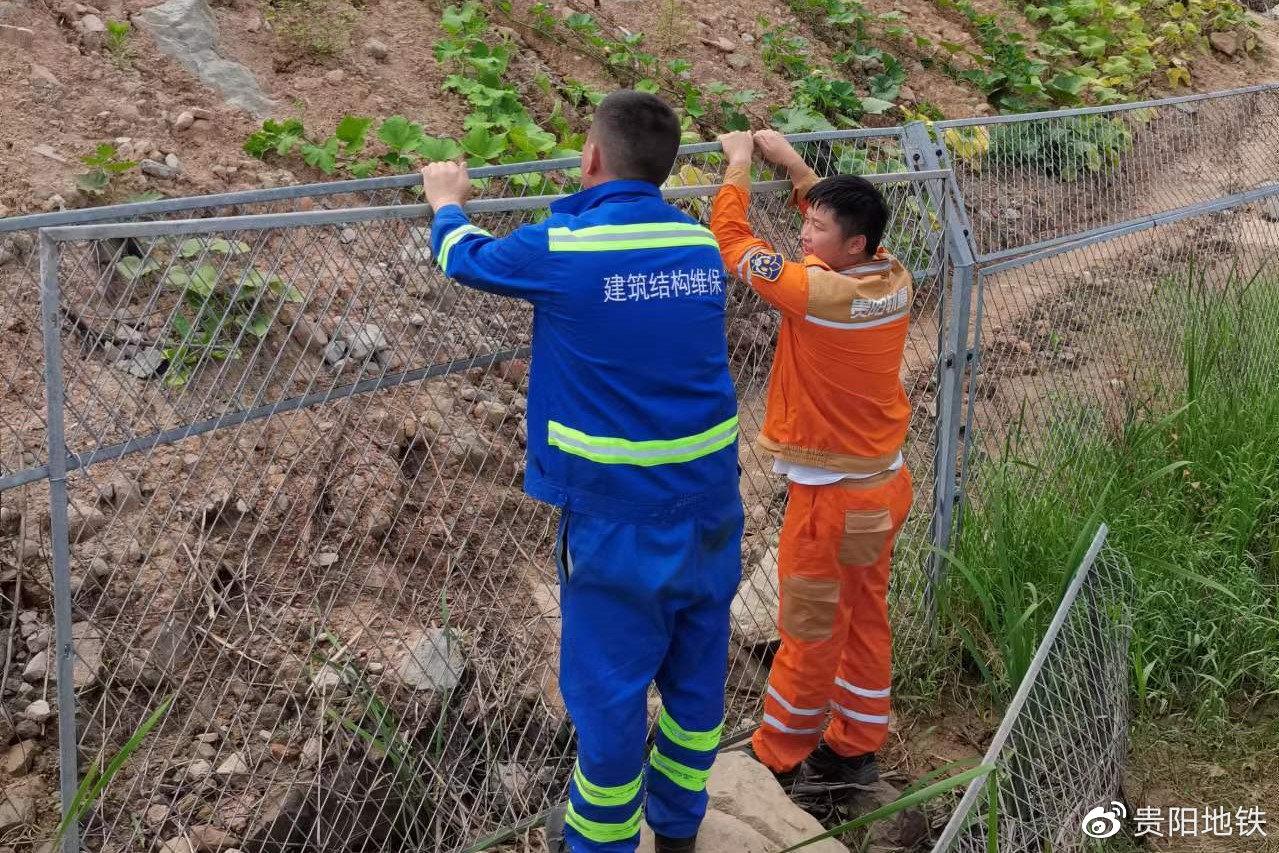 运营分公司工作人员在近期巡查中发现,贵阳地铁1号线小河停车场地铁保护区部分围网遭到破坏,有市民在围网内违规开垦耕种,存在安全隐患。为保障贵阳地铁安全运营,运营分公司、地铁物业公司相关工作人员联合小孟工业园站派出所民警赶赴现场,及时制止违规开垦行为,对现场围网受损情况进行调查并加固修复。